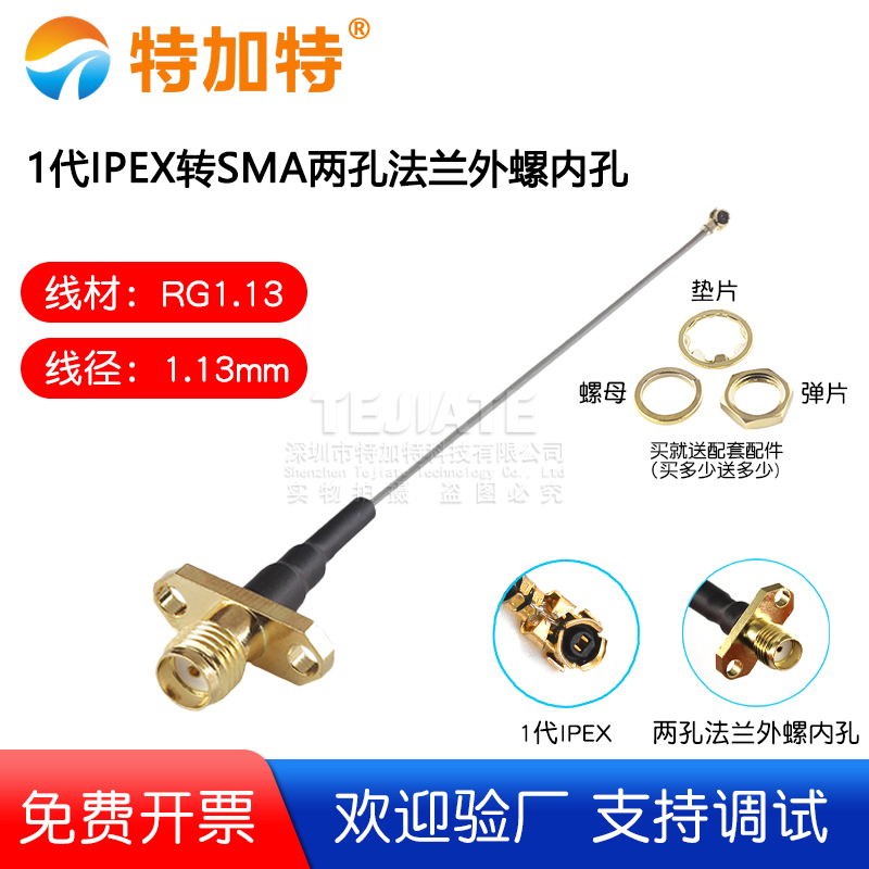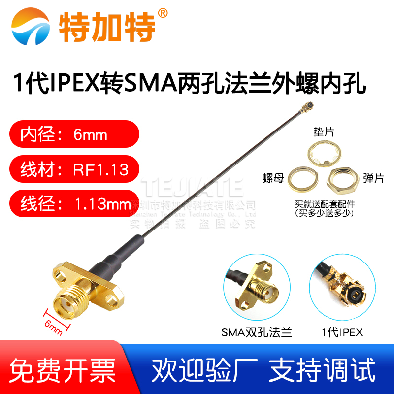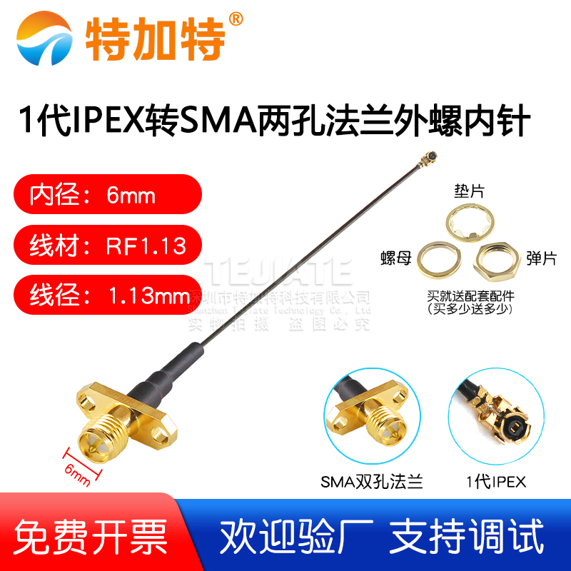 1代IPEX转SMA两孔法兰外螺内孔 1.13线