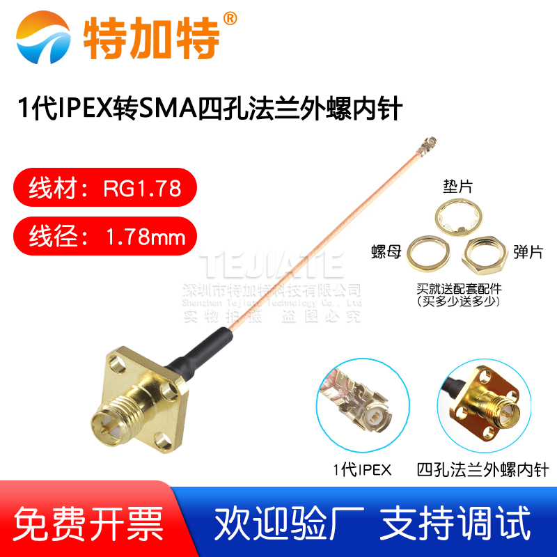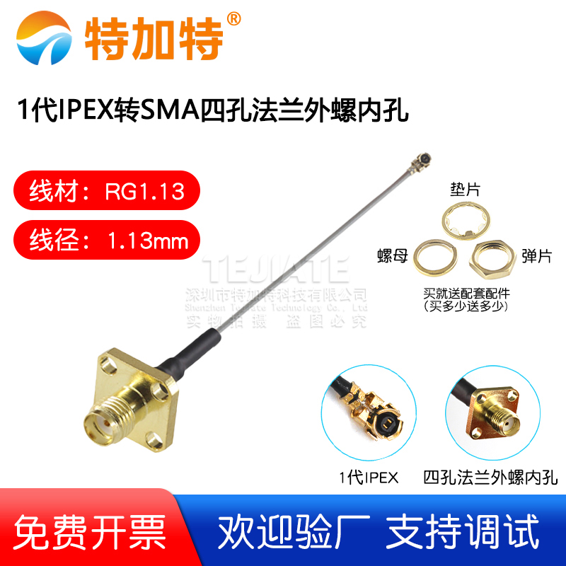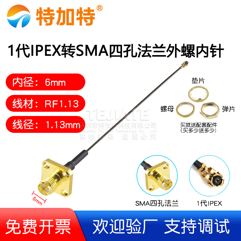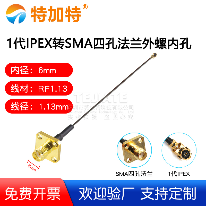 1代IPEX转SMA四孔法兰外螺内孔 1.13线