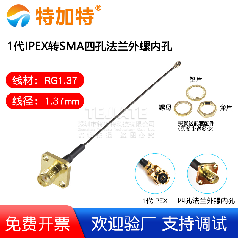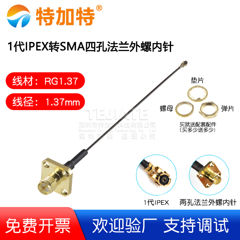 1代IPEX转SMA四孔法兰外螺内孔 1.37线