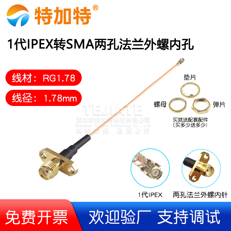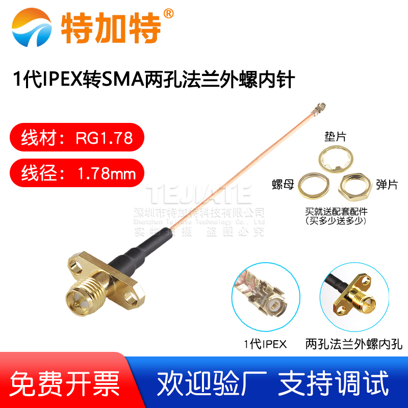 1代IPEX转SMA两孔法兰外螺内孔 1.78线