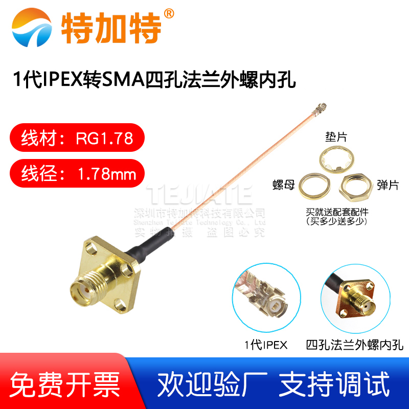 1代IPEX转SMA四孔法兰外螺内孔 1.78线