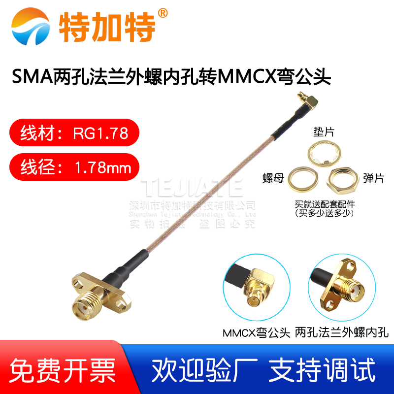 SMA两孔法兰外螺内孔转MMCX弯公头 1.78线