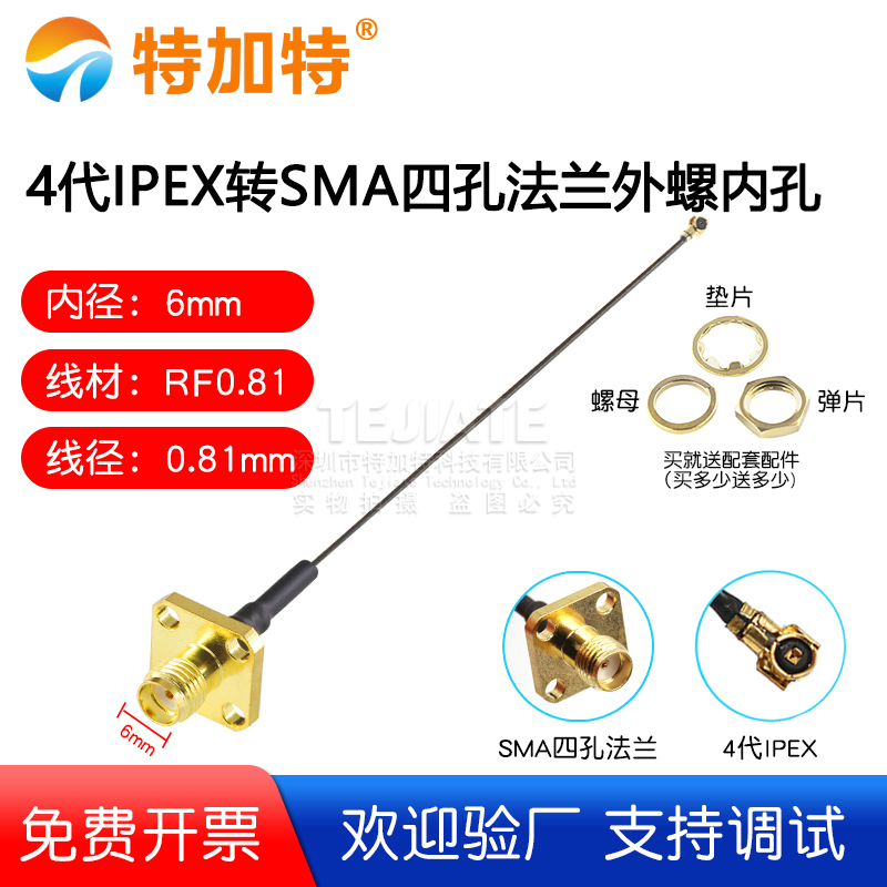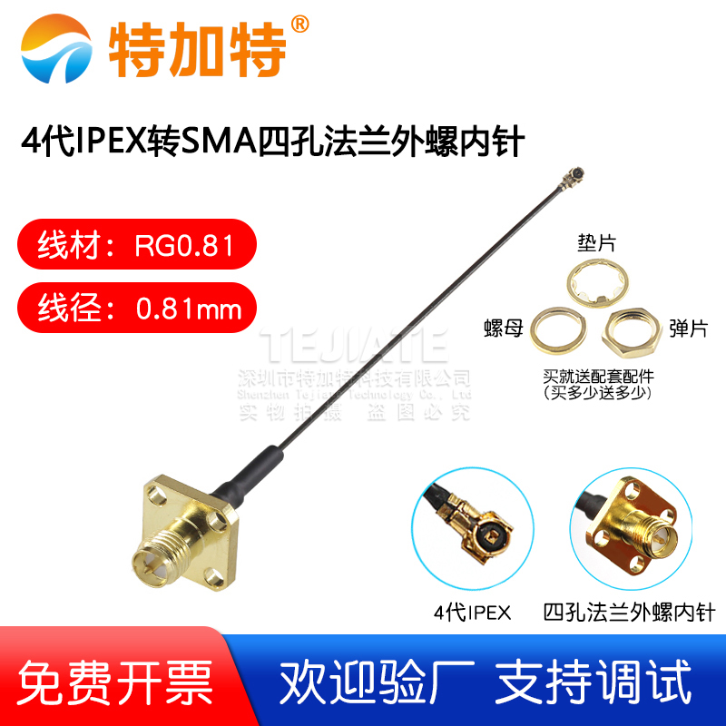 4代IPEX转SMA四孔法兰外螺内孔 0.81线
