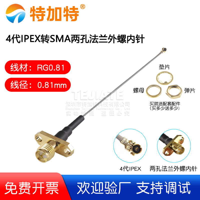 4代IPEX转SMA两孔法兰外螺内孔 0.81线