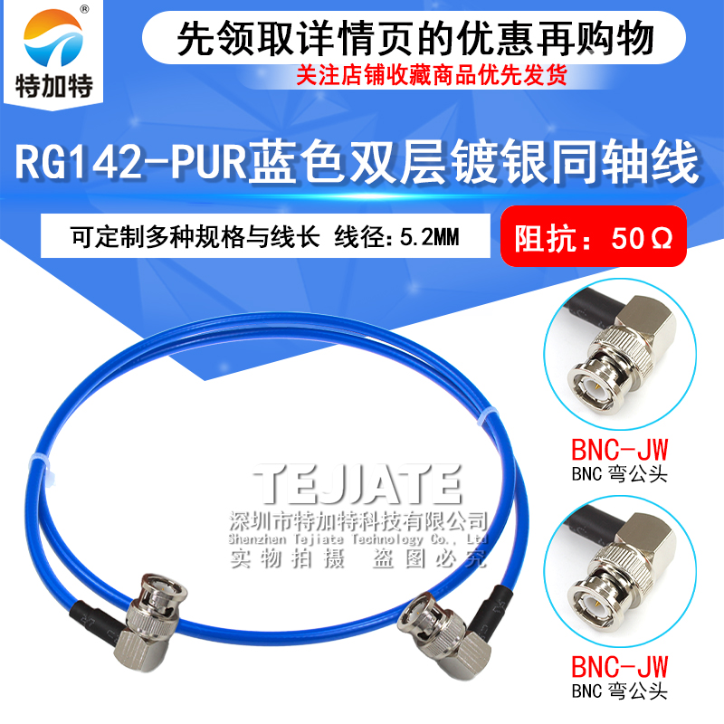 RG142-PUR蓝色柔性双层镀银同轴射频线 BNC-JJ BNC-JW BNC公转公