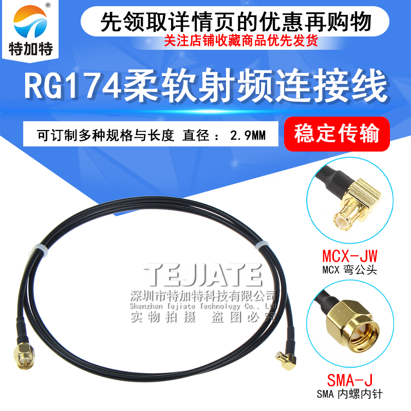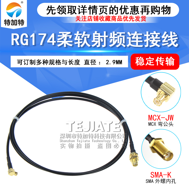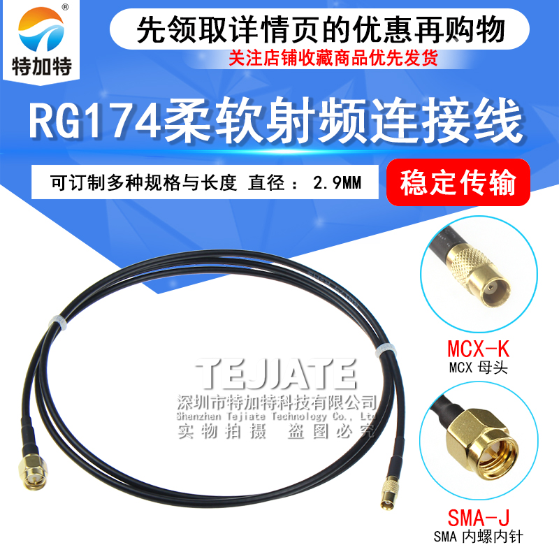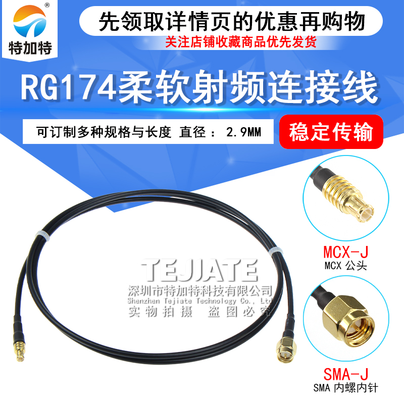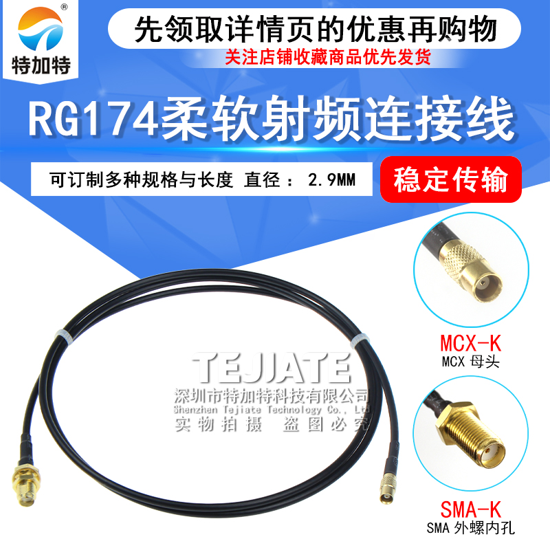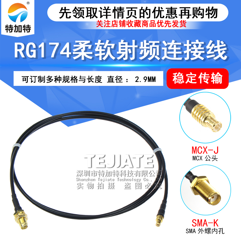 SMA转MCX射频线 SMA/MCX-JKW转接线 MCX转SMA延长线 RG174同轴线