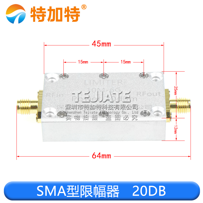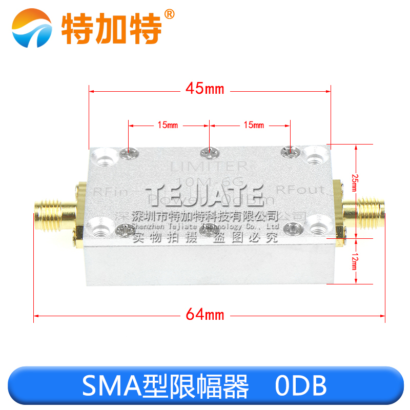 特加特SMA射频限幅器是一款适用于10MHz至6GHz频率范围内的高性能限幅保护元件,采用SMA接口设计,便于安装与匹配各类射频系统.本系列产品内置PIN二极管,支持0dBm\10dBm\20dBm等不同限幅等级,能有效抑制输入信号的瞬态尖峰或过高电平,保护后端敏感电路不被损坏.该限幅器具备响应速度快\插入损耗低\可靠性高等特点,广泛应用于通信\雷达\测试仪器\无线传输等领域,尤其适用于信号接收端的前级保护.产品结构紧凑,选材优质,适应多种工作环境,适合对射频系统稳定性与安全性有较高要求的工程应用.Tejiate出品,品质保障,支持定制服务.